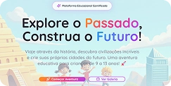 Viaje através da história, descubra civilizações incríveis e crie suas próprias cidades do futuro. Uma aventura educativa para crianças de 9 a 13 anos!